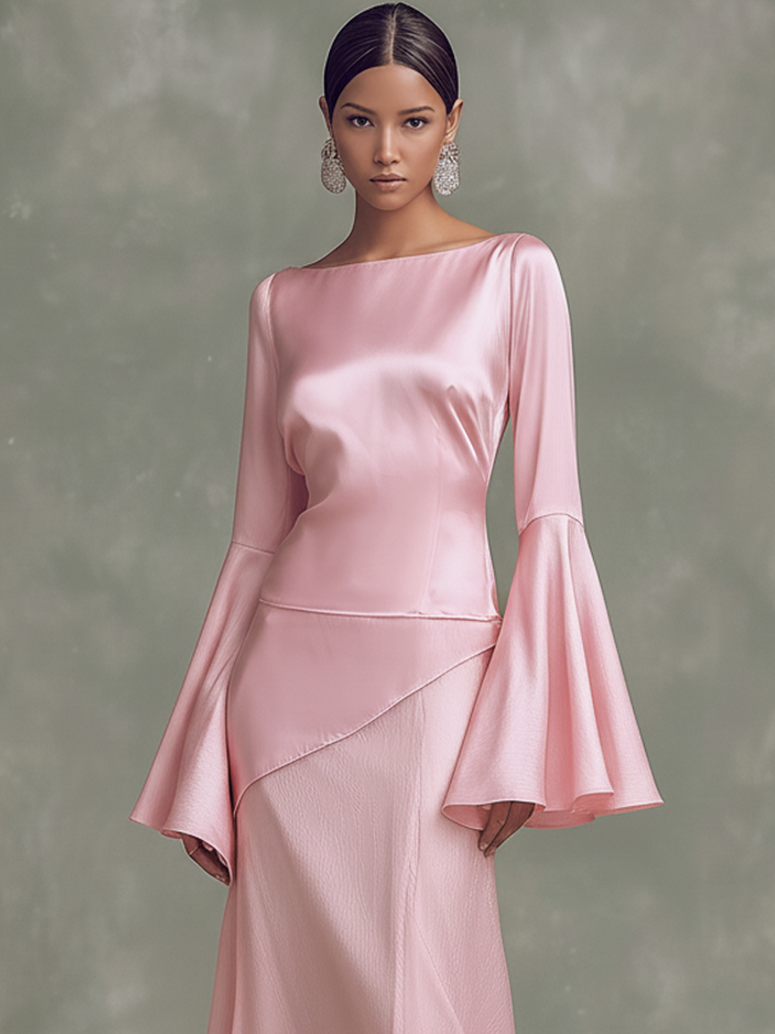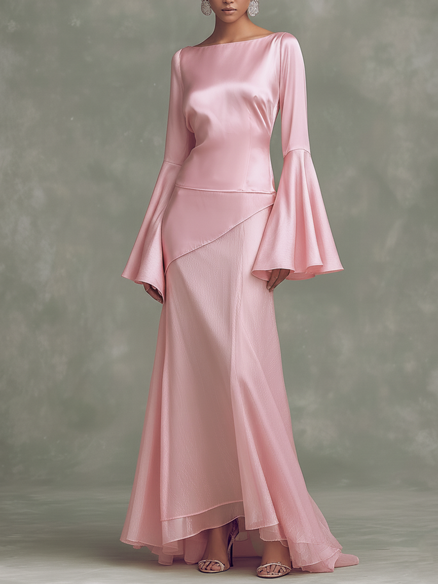 Women's Minimalist Satin And Chiffon Patchwork Maxi Dress MDA0193L8Y