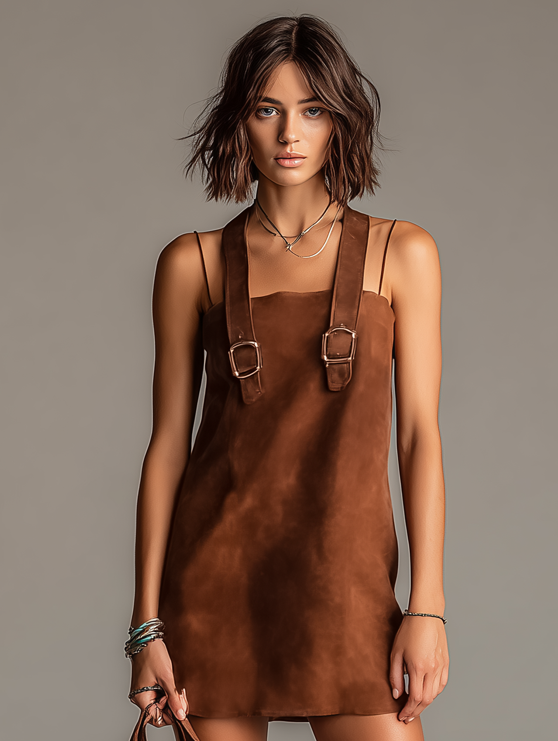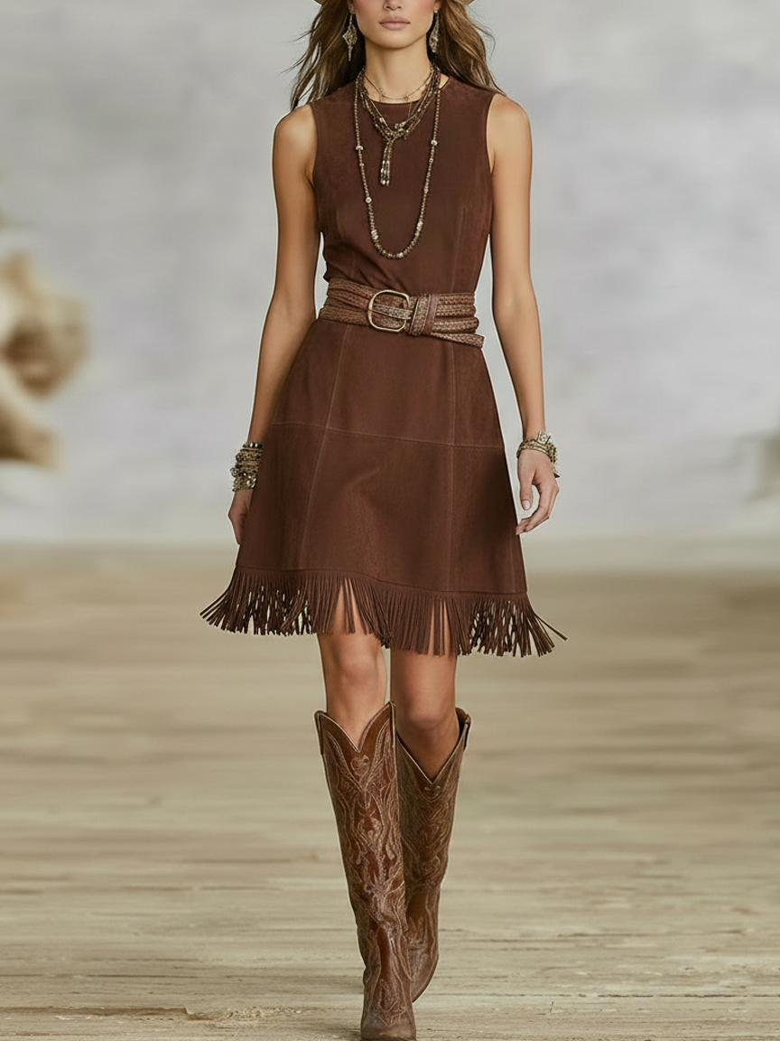 Women's Vintage Loose Suede Turtleneck Mini Dress MDA1693H3Y