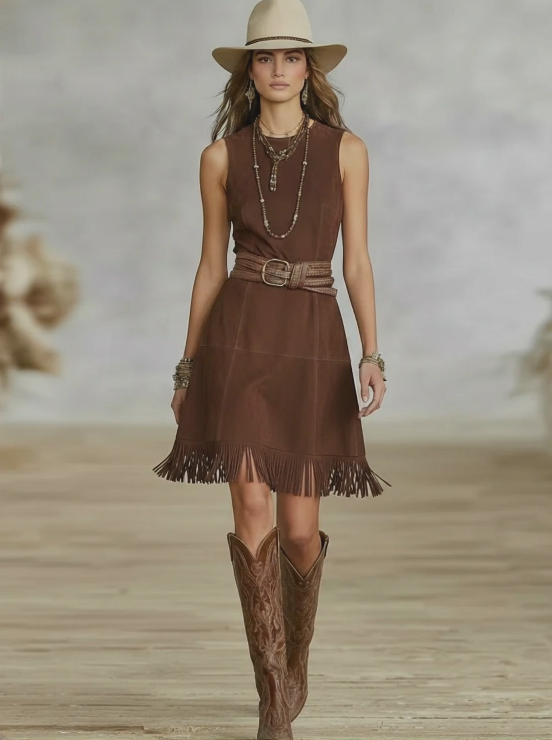 Women's Suede Single-breasted Lapel Belt Maxi Dress MDA1205H8Y