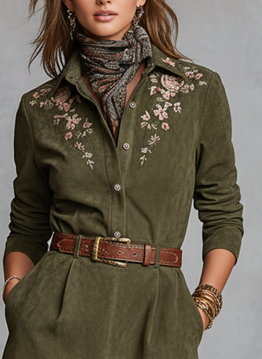 Women's Faux Suede Embroidered Belt Mini Dress MDA3023J3Y