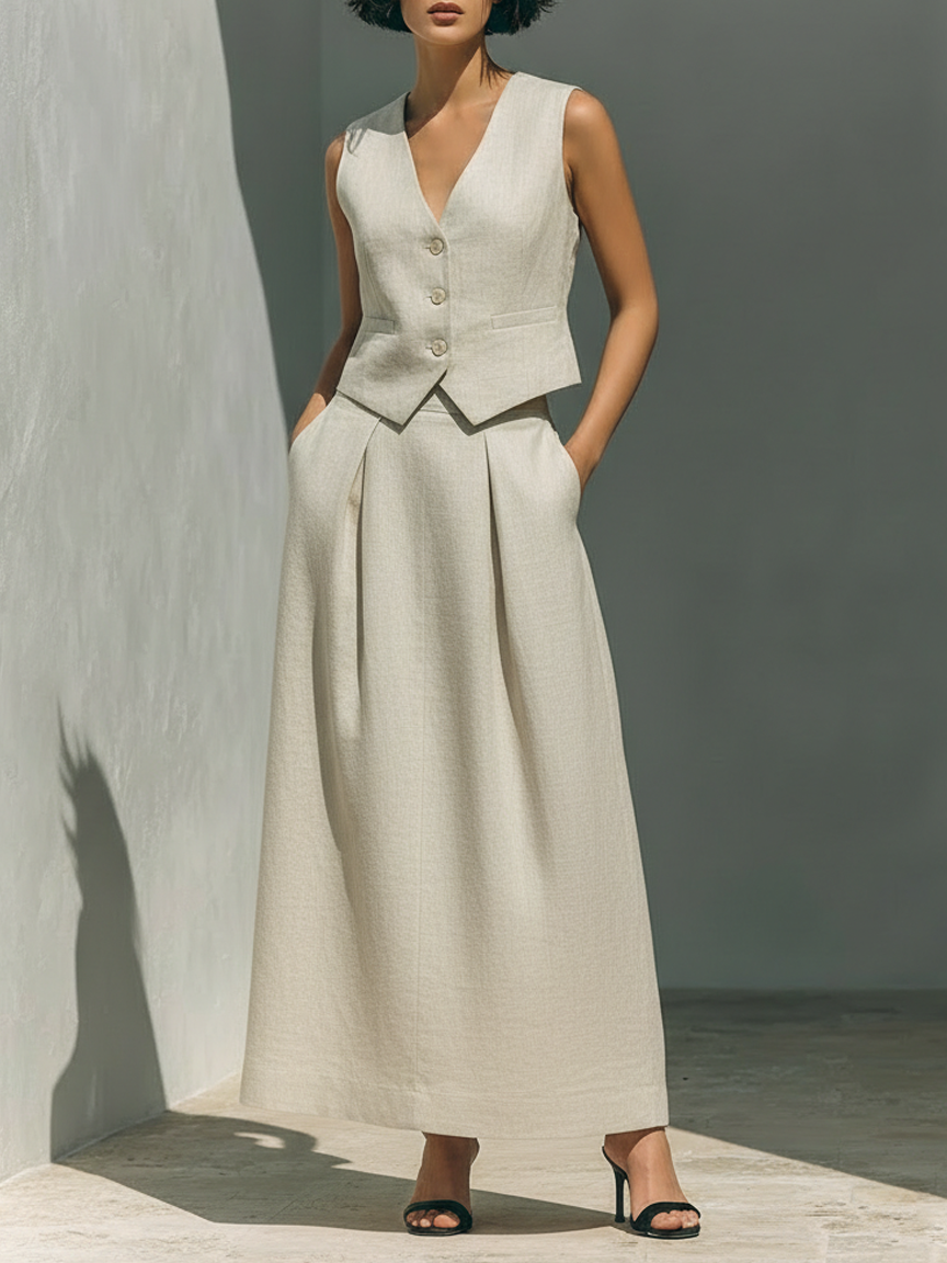 Women's Minimalist Linen Blend Vest And Skirt Set MDZ2652B0Y