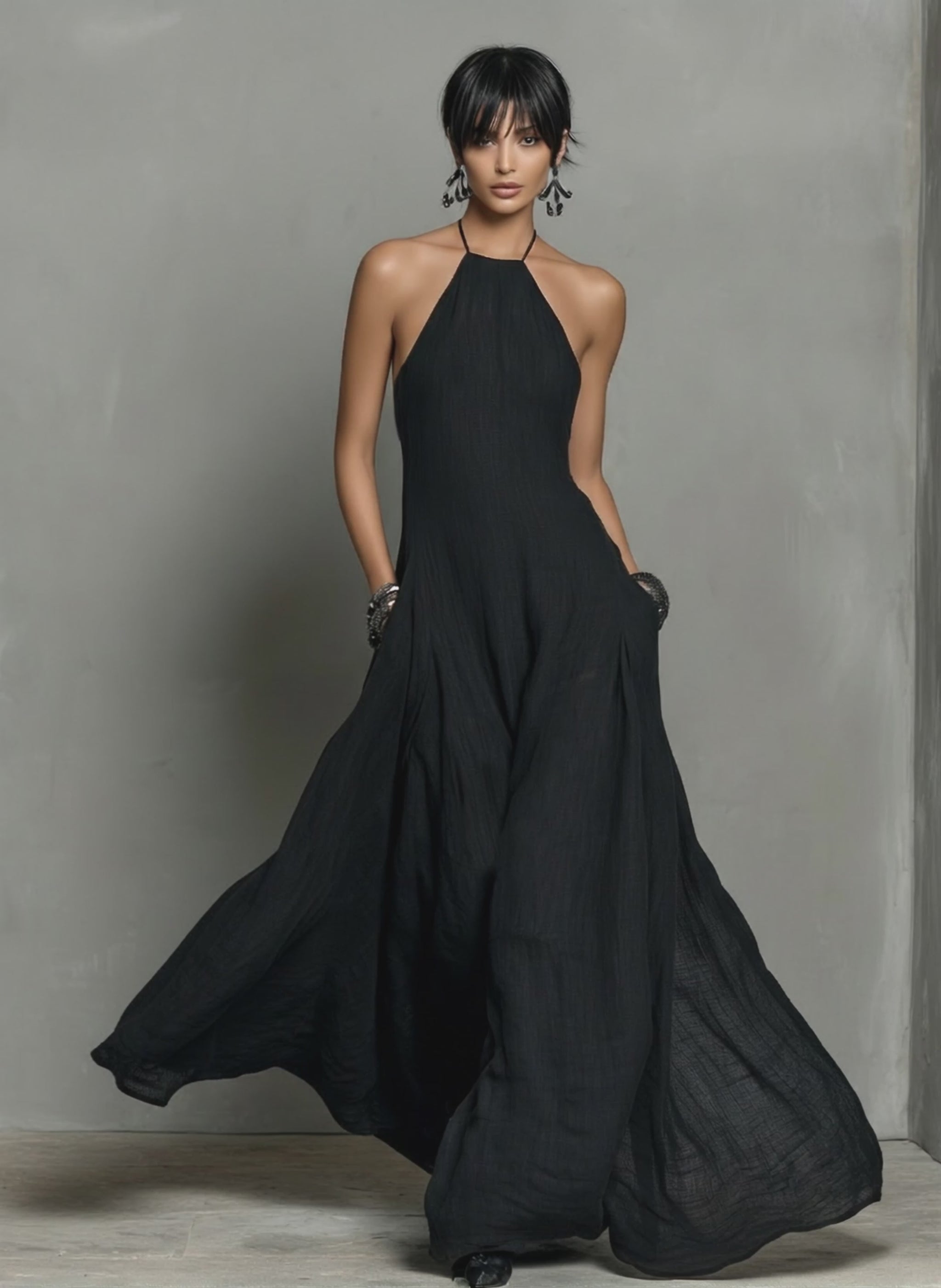Product Name: Women’s Minimalist Linen Blend Halter Neck Sleeveless Maxi Dress