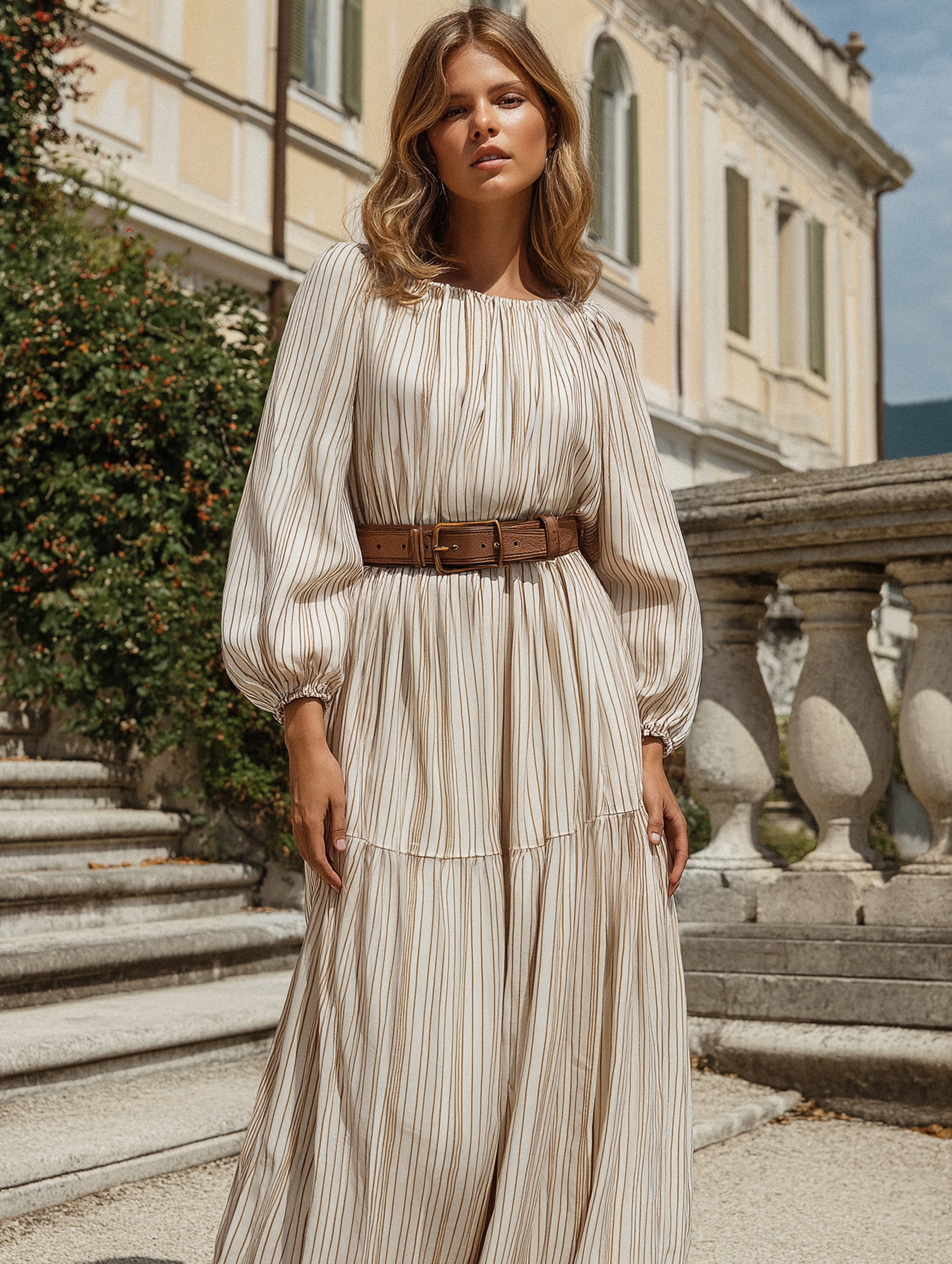 A sophisticated and versatile maxi dress featuring classic shirt-dress elements, tailored lines, and a belted waist for a flattering, effortless silhouette.
